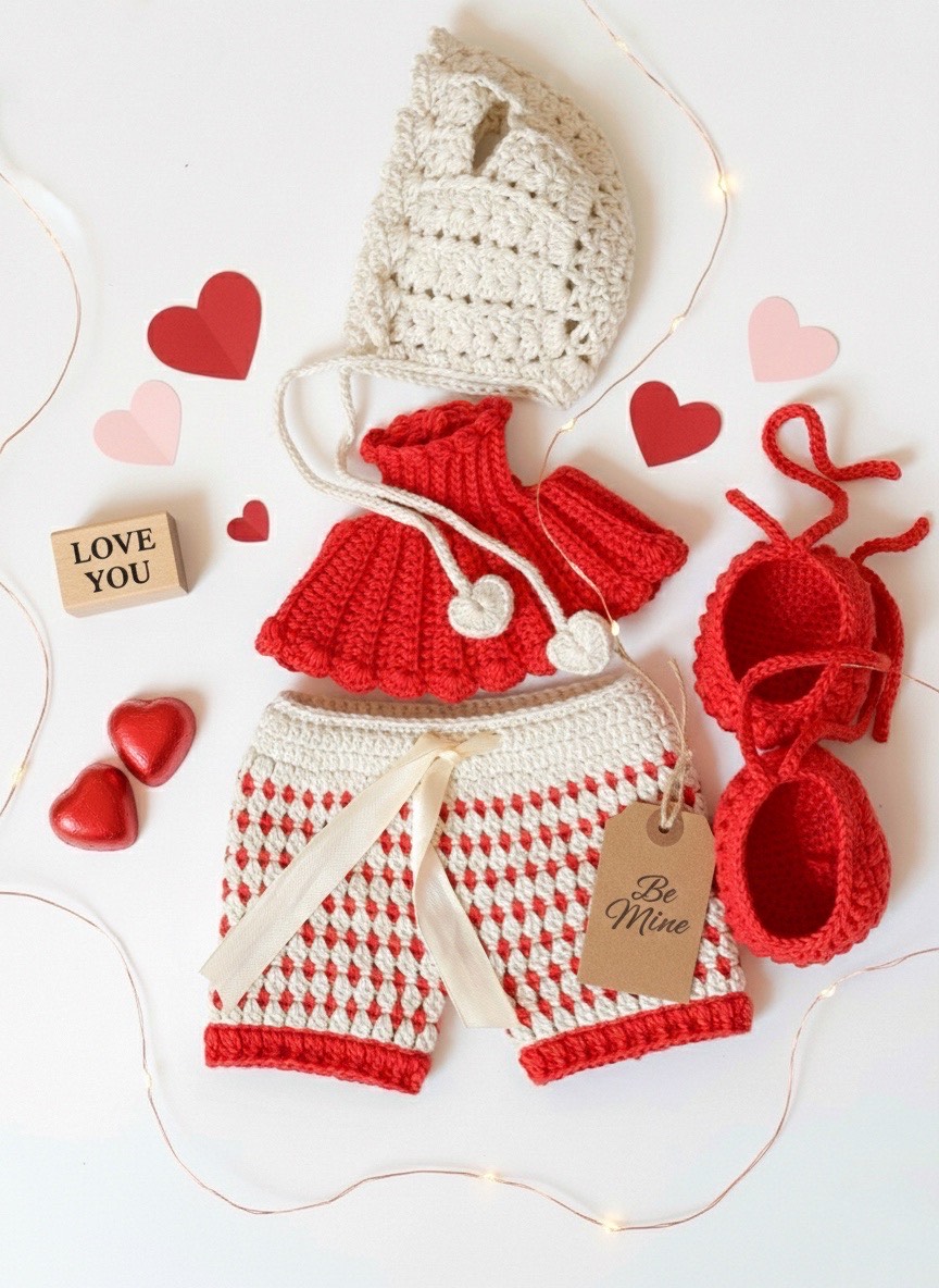 Un diseño tejido a crochet inspirado en San Valentín, lleno de detalles delicados, texturas suaves y ese estilo acogedor que enamora a primera vista.