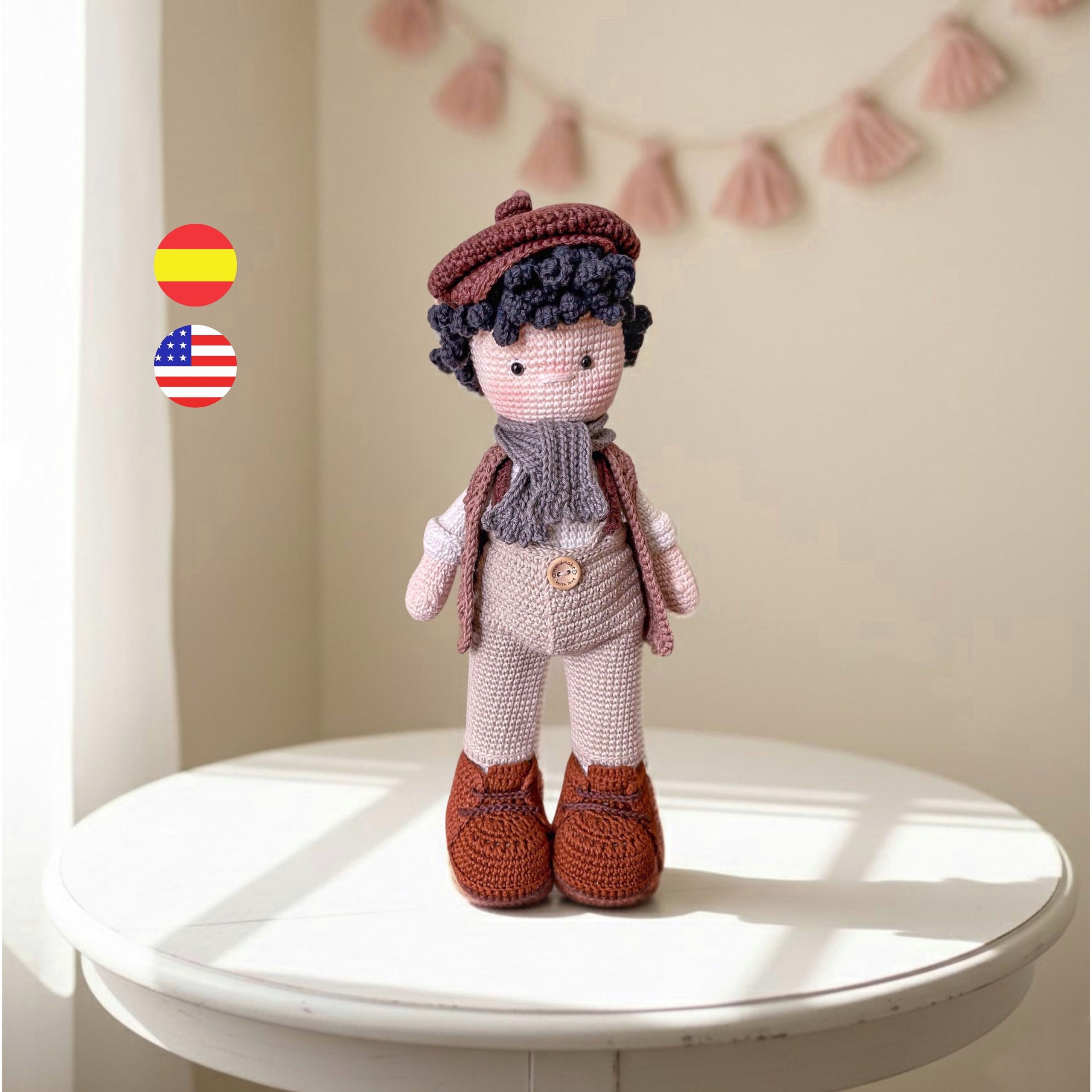 Si te encanta el personaje vas a amarlo aún más cuando lo estés tejiendo, porque en el verás cómo tejer una pieza sin cortes como lo hicimos en su chaqueta, cómo las distintas direcciones y formas de tomar puntos pueden generar diferentes texturas… cómo agrandar una pieza y que se vea tan prolijo como el medio punto?